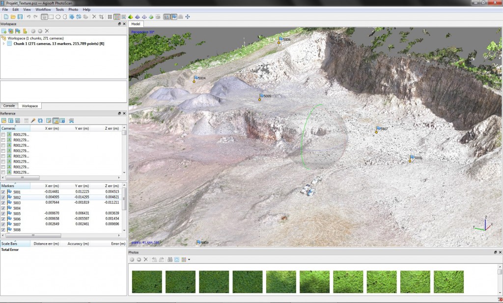 Agisoft Metashape je profesionální fotogrammetrický nástroj pro automatické generování texturovaných polygonových modelů, georeferencovaných ortofotomap ve vysokém rozlišení a mimořádně detailních digitálních modelů terénu (DMT) z pevných snímků.