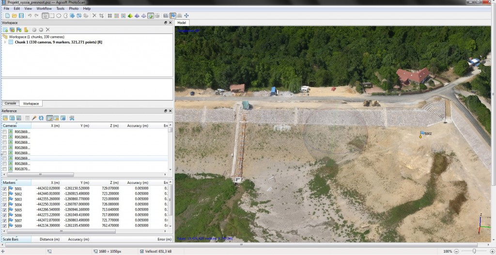 - Přímo v Metashape lze měřit objemy či plochy